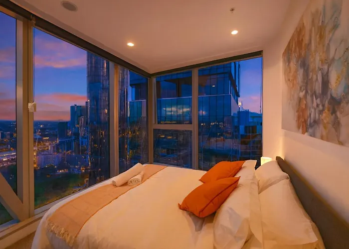 Gasten kunnen verblijven in Brand New - City View - Convenience - Pool - Gym Melbourne appartement van 65 m², gelegen in het hartje van Melbourne en op 2 km van Universiteit van Melbourne. De aanwezigheid van een sauna en een overdekt zwembad draagt ook bij aan een aangenamer verblijf.